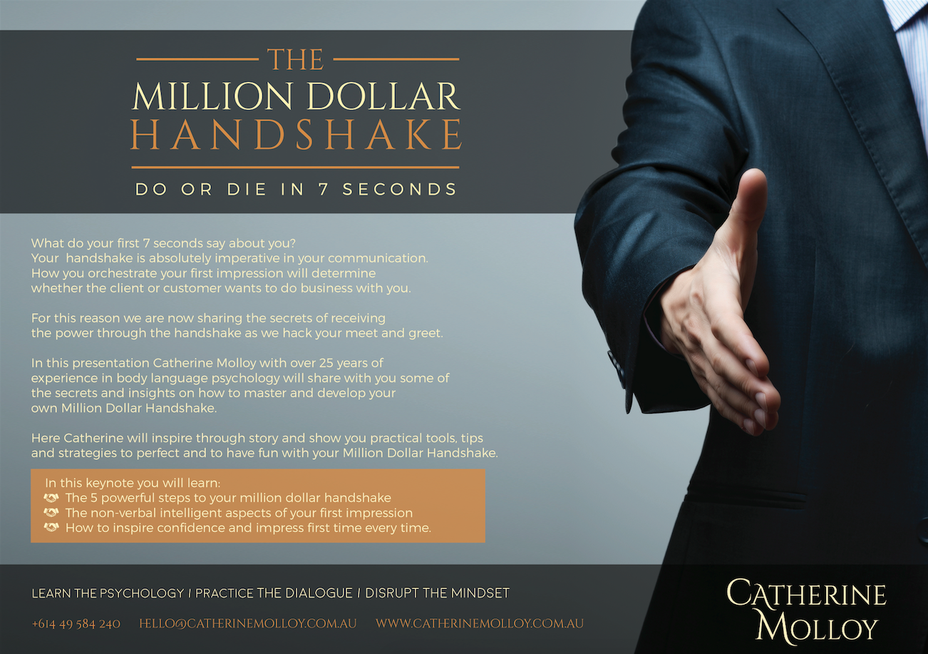 In this presentation Catherine Molloy with over 25 years of experience in body language psychology will share with you some of the secrets and insights on how to master and develop your own Million Dollar Handshake.