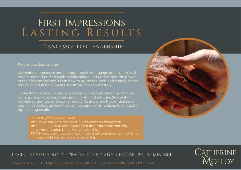 Catherine’s interactive and energetic style will engage and inspire leaders, teams, and professionals to take action and understand the power of their first impression. Learn how to utilize the tools and strategies she has collected in her 25 years of communication mastery.