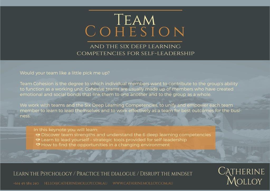 We work with teams and the Six Deep Learning Competencies, to unify and empower each team member to learn to lead themselves and to work effectively as a team for best outcomes for the business.