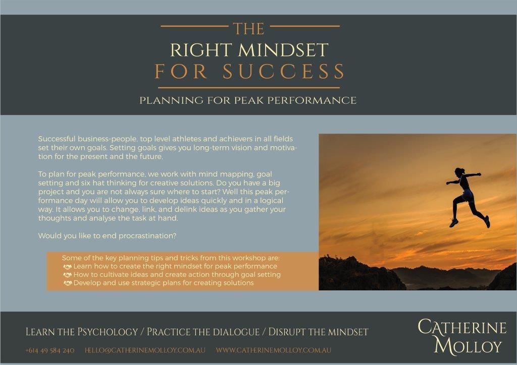 To plan for peak performance, we work with mind mapping, goal setting and six hat thinking for creative solutions. Do you have a big project and you are not always sure where to start? Well this peak performance day will allow you to develop ideas quickly and in a logical way. It allows you to change, link, and delink ideas as you gather your thoughts and analyse the task at hand.